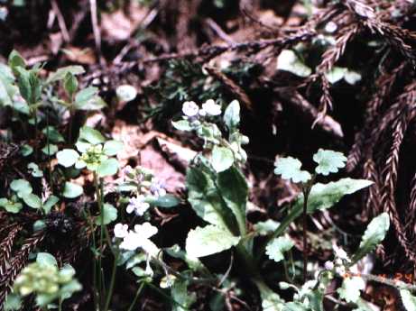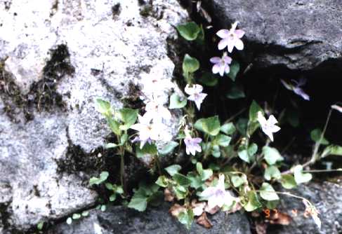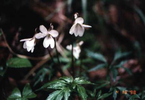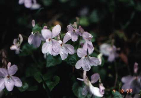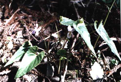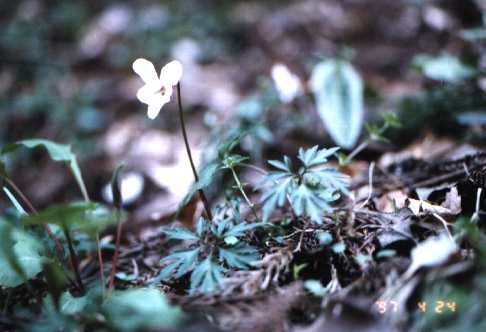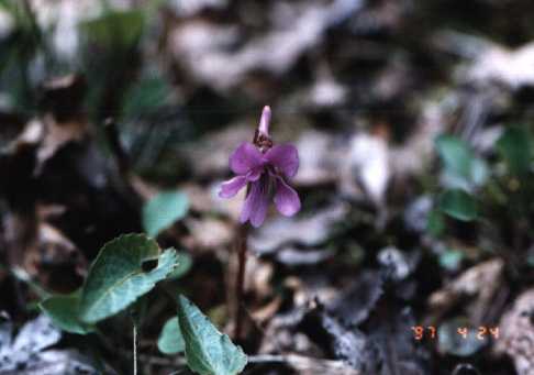 山地の樹木のかげにある。春に紫白色の大形の花をつける。