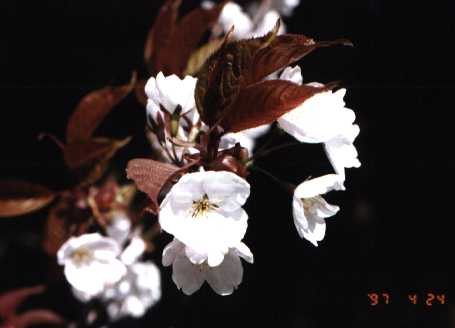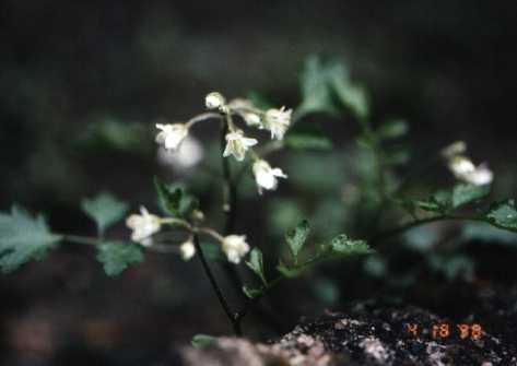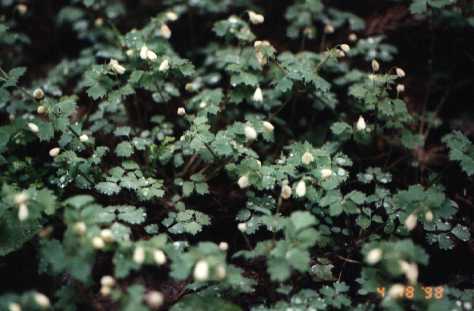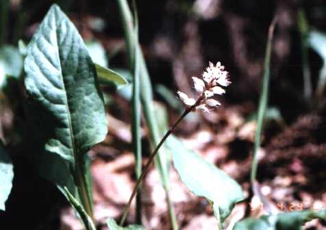 葉柄は2~3cm、無毛、常赤色。花は4月葉と同時に開き、2~3個散房状につく。