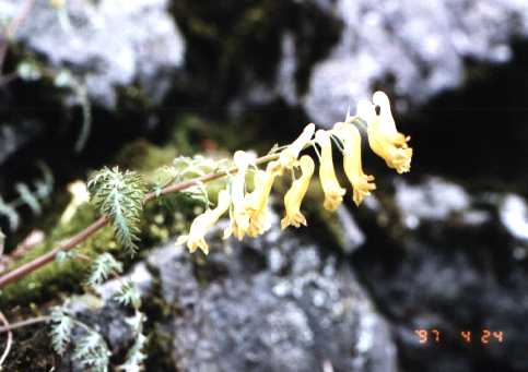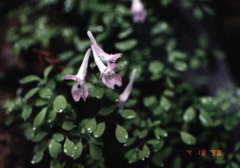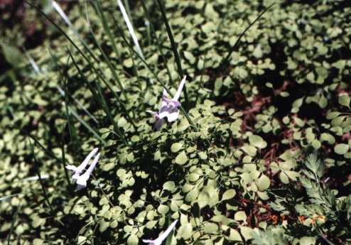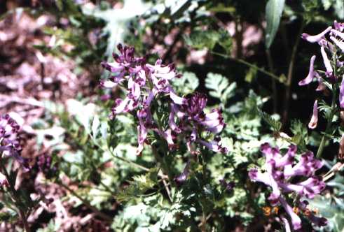 山の林の中に生える多年草。4~5月頃に碧紫色の花。ヤマエンゴサクに似るが葉が違う。