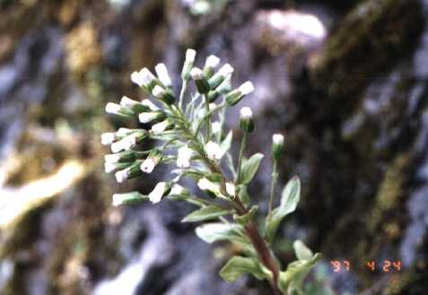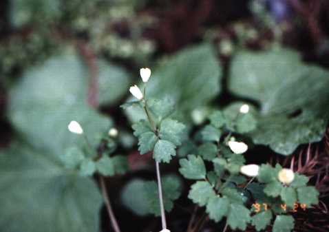 山地の樹下にはえる多年草。5月頃10cm前後の花径に長さ2~3cmの総状花をつける。