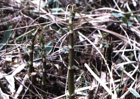 新春には太い茎が食べられる。夏になると雄花、雌花が違った株にできる。