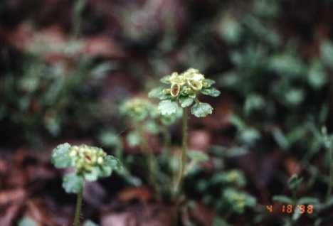 谷間の湿地に生える多年草。4~5月頃に10cm内外の花茎を出し、苞葉は一部黄色となり、