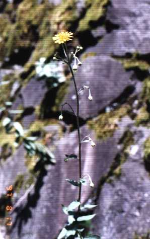 山に生える多年草。葉の縁に小数の凸がある。8~9月頃に黄色の花をつける。