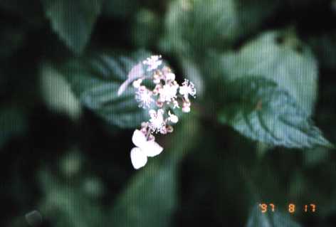 山地に生える多年生草本。花は淡紅白色。他のアジサイと区別しやすい。
