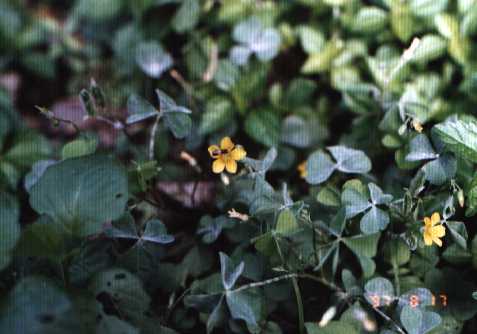 茎は地上をはう。白色、赤紫色のいずれかの花をつける。