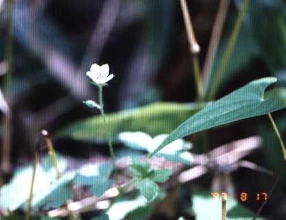 山野の乾いた土地に生える。花は白色、時にはうす紫のものもある。葉は対生し、