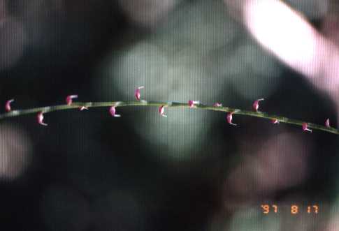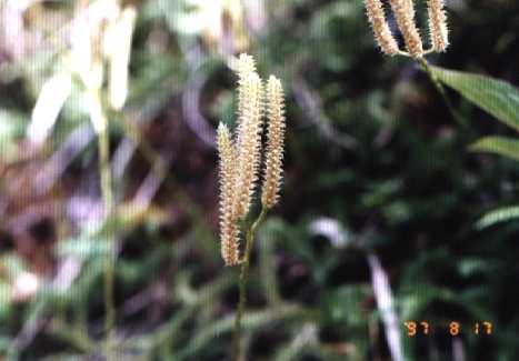 花は細長い穂についている。その形が「水引」に似ているので、この名がつけられた。