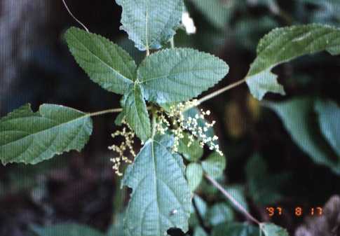 山の木陰に生える。果実は成熟すると衣類によくくっつく。