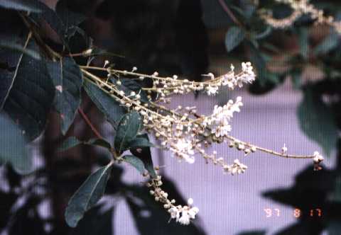 古い枝は淡褐色で光沢があり、若い部分は密に星状毛。