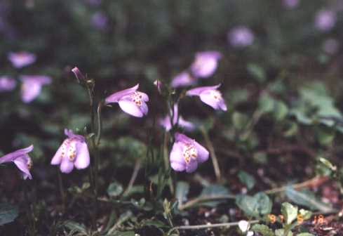 くちびるの様な形の花びらがある。ムラサキサギゴケとよく(くちびるの形)似ているが