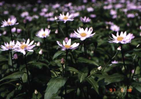 山地にはえるヨメナ。平地にはえるヨメナより花弁が大きい。ミヤコワスレはこの植物の園芸品種