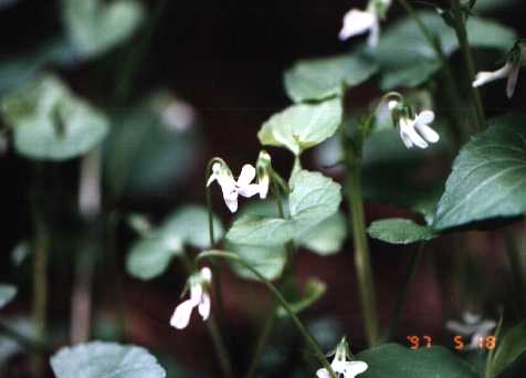 草地の湿ったところに普通なスミレ。花は小形(10~13mm)で白色。
