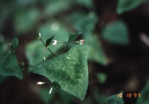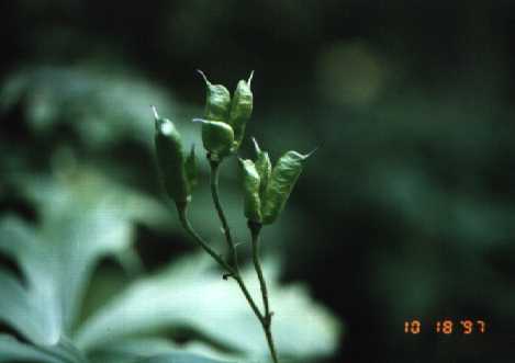 山地の樹の陰にある。根から出た葉は「ふき」に似ている。果実は、他のものによくくっつく。