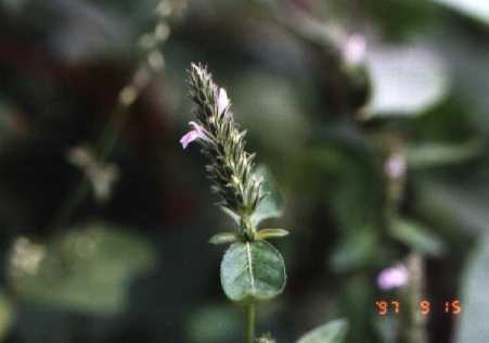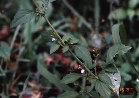 日当たりのよい山地にはえる。花は8~9月に開花。葉は楕円形。先端やや凹頭。