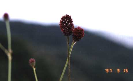 草地に生える多年草。比叡山のワレモコは富士山麓から入れたドライブウエイの芝の中にある。