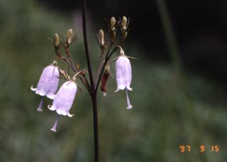 葉のつき方が輪生。花がよく似ているが葉のつき方が互生のものをヒメシャジンという。