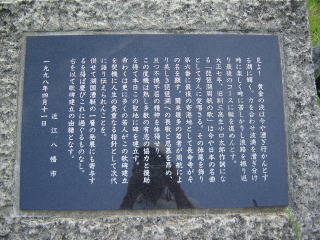 旧制三高生 小口太郎作詞の琵琶湖周航の歌に近江八幡市の長命寺が載っている説明が刻まれている (040816) |