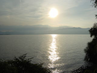 夕暮れの琵琶湖 いつも自転車で行く長命寺港から (040816) |