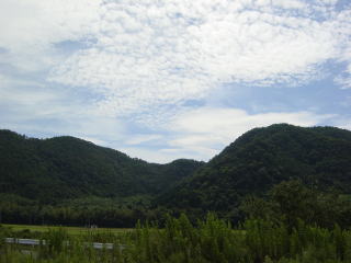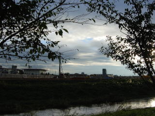 台風が通過して青空が出てきたところ。(下の画像の右側を写した) この場所は新しい近江八幡市民病院を建てるため、現在造成中で2006年に開院予定、家からすぐ近くのため便利になります。 (041009) |