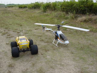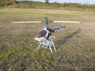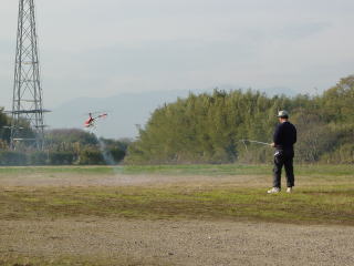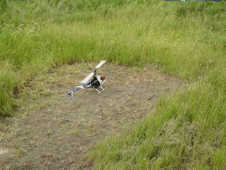 63歳からヘリを始められたHさんのアメンボウ付きシャトル30。 猛練習でホバリングが上手くなってきました。今ではヘリの虜になってしまった。 (041028) |