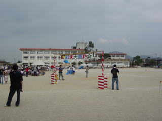 昔はグラウンドの周りは人だらけだったが、今はガラガラ 桐原東小学校 (040918) |