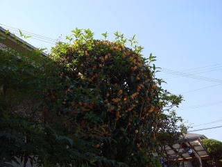 我が家の玄関に咲いたキンモクセイの花が良い臭いをかもしだしている。 (041016) |