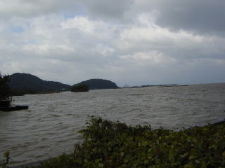 台風23号が去ったが、濁流が川に流れ込んでいる。 (041021) |