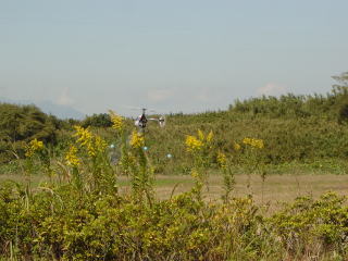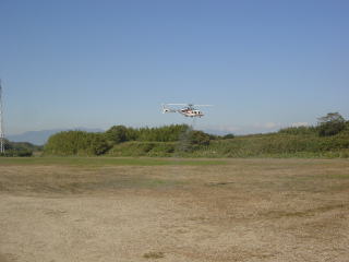 殆ど風もなく快晴の日野川河川敷で久しぶりにベル230を飛ばした。 (041028) |