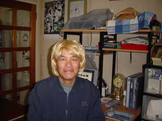ケ・セラ・セラ会 家内が商品交換であたったカツラであきら君も金髪に変身だ! (041114) |