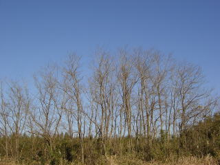 昨年撮影していた木(ニセアカシア) 12月半ばというのに雲1つなく、風もない青空(飛行場周辺に生えている木々) (041214) |