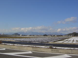 飛行場も少し雪が残っている。遠方の比良山系に雪が美しい! (050124) |
