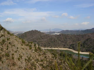 いつもの池の一部とあきら君の住む町(左奥)とあきら君が定年退職したM製作所(中央奥) 田中山より (050114) |