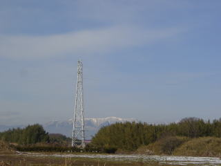 初詣の帰りに撮った遠くに見える比良山系 (050102) |