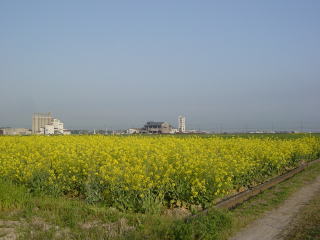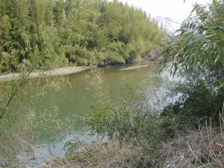 春を感じさせる穏やかな日野川、この横に飛行場がある (050309) |