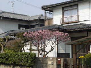 近所の家に咲いている紅梅、毎年この紅梅を見ると心がうきうきして春の訪れを感じる (050316) |