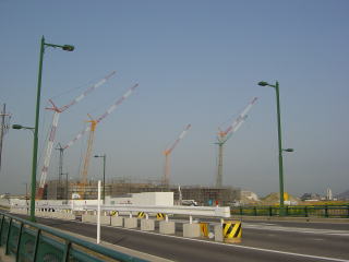 近江八幡市民病院も大きな蟹の足で着々と進んでいる。蟹の足は遠方からも良く見える (050428) |