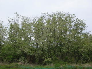 ふと見ると、全く気がつかなかった飛行場のニセアカシアの木に見事な花を咲かせていた (050520) |