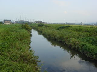 ギンヤンマが飛んでいる白鳥川 (050901) |