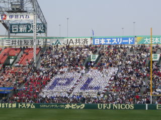 PL学園の人文字が見える場所に移動した。 あきら君の出身である大阪だが結果は悲惨だった。 (060403) |