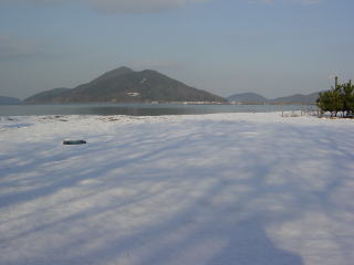 昨日の雪が残る琵琶湖の牧水泳場 (070203) |