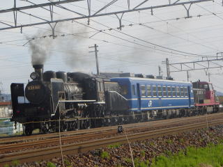 南座歌舞伎鑑賞教室の帰り近江八幡に何故か止まっていた蒸気機関車 (070420) |
