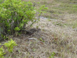 飛行場の場所で、卵を温めている?雌の雉(ツツジの木の下) 雛がかえるのが楽しみだ! (070620) |