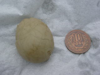 雉の巣跡の近くにあった卵の殻 どうも狸?にやられたようだ! 以前は狸に餌をやっていたのに、今度は狸汁にしてしまうぞ! (070626) |