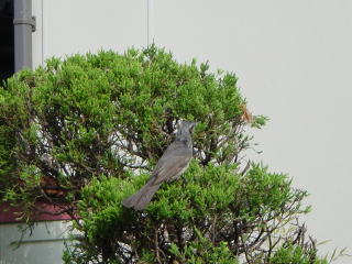 家の庭に鳥が止まって音を立てても逃げようとしない鳥 何鳥かな? (080508) |