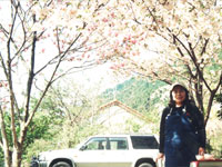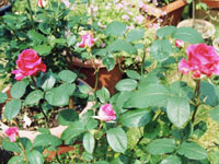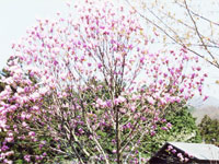 4月下旬・横の駐車場に咲く八重桜 夜はライトアップされます。 | 阿蘇山で購入した花しのぶ | あっちこっちに咲くバラの鉢植え |