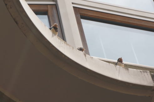 止揚学園の玄関に、毎年つばめが帰ってきて子育てをしています。