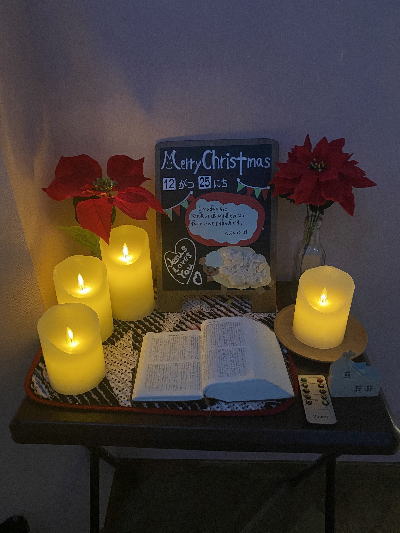 4本のろうそくに灯りがともりました。喜びの日、愛が生まれた日、イエス様のお誕生日です。