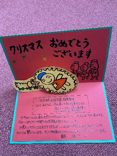 「今年ほど人の温もりを感じた年はありませんでした。それは心がその温かさを求めているからだと仲間たちの笑顔が教えてくれます。お集まりいただくことは出来ませんが、心が温かさを覚えている限り、いつも私たちは繋がっています。そして、神様がいつも心の温かさを守って下さいます。」