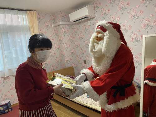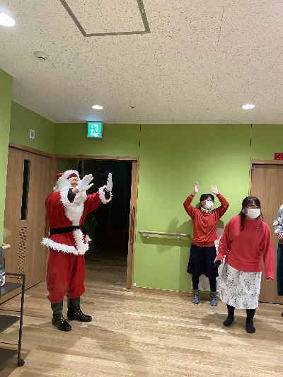 今年はなんと、新しい建物のみんなの居室にサンタクロースさんが来て下さいました!!