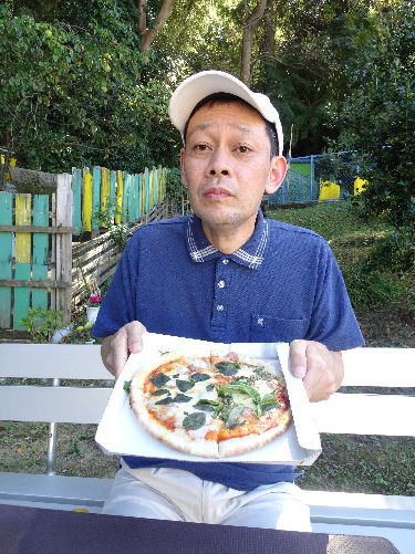 ひとりづつ、こんな大きピザをペロッといただきました・・・風が気持ちよく最高でした!!